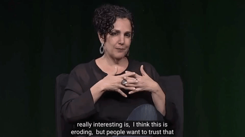 Yaël Eisenstadt agrees with the general notion of disconnect, explaining that while people are losing trust in companies, they're not stopping to use them, arguing it’s because they don't have an alternative for some of these companies.