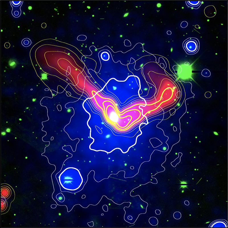An international team combined data from ASKAP, SRG/eROSITA, XMM-Newton and Chandra satellites, and DECam optical images. And they discovered a large galaxy with a black hole at its centre, moving at high speed.
