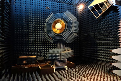 Shielded far-field anechoic chamber: Frequency range 1 to 200 GHz, dimensions 10m x 6m x 4.5m. Positioner axes available are: source height and polarisation, source to antenna-under-test (AUT) distance, AUT azimuth, elevation, polarisation, axial and transverse location.